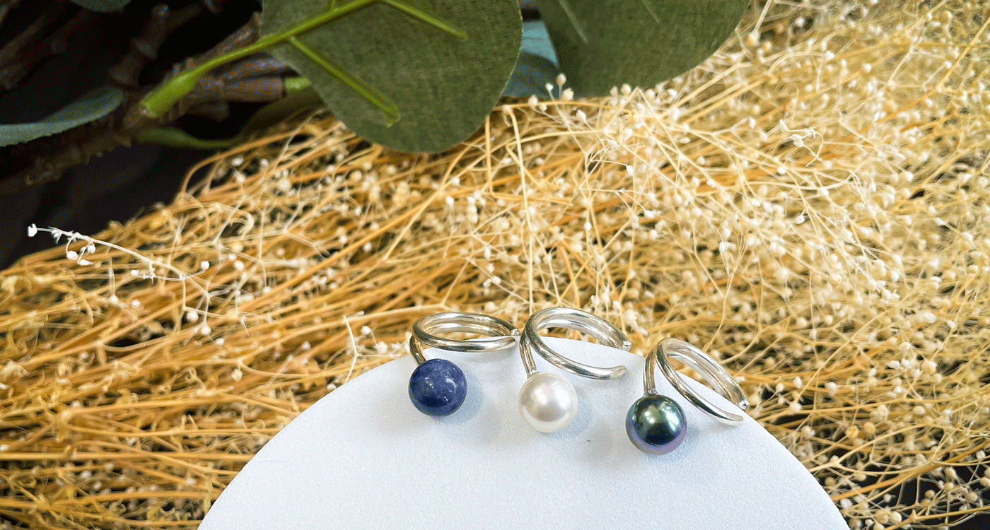 SILVER925をベースに、天然石やパールなど様々な素材をミックス。