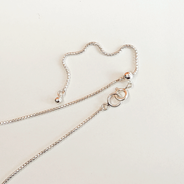チェーンはベネチアンチェーンを使用。長さは45cm。スライドボールで調整ができるので、チョーカーっぽく使うこともできます。